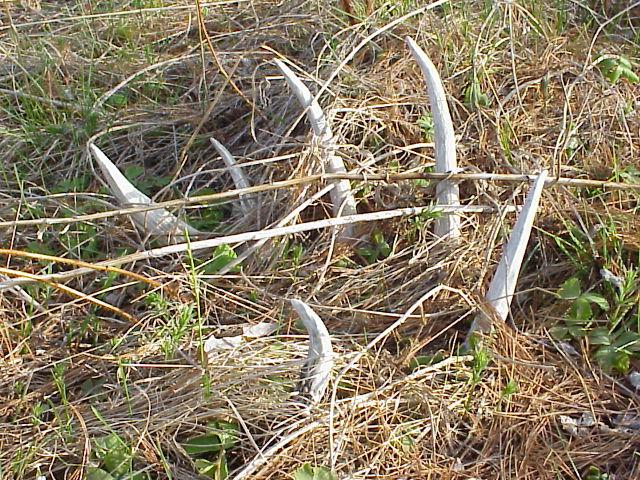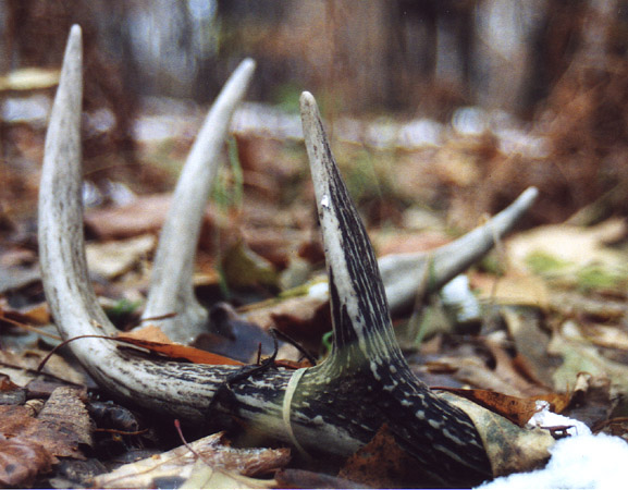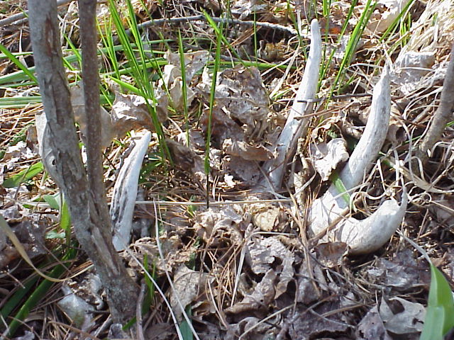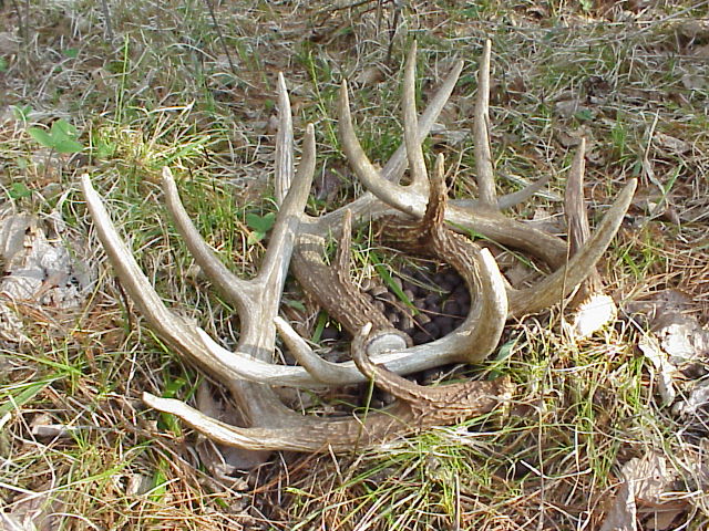 May 2002. Mike Lindquist piled 'em up one morning while shed hunting near Golden Valley, MN. The jackpot = 2 fours and 2 fives, all singles. Good timing: we needed some towel hooks in the newly constructed log sauna.
