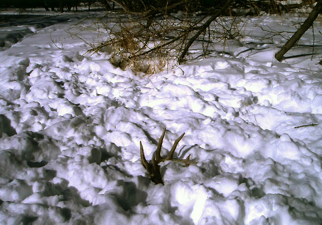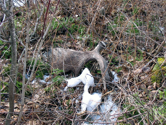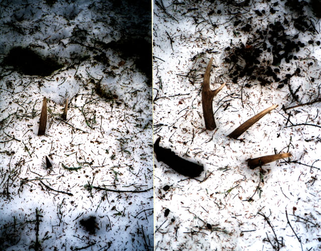 March, 2004. Chris and Stephanie Potter came across these impressive whitetail finds while shed hunting in northern Minnesota.