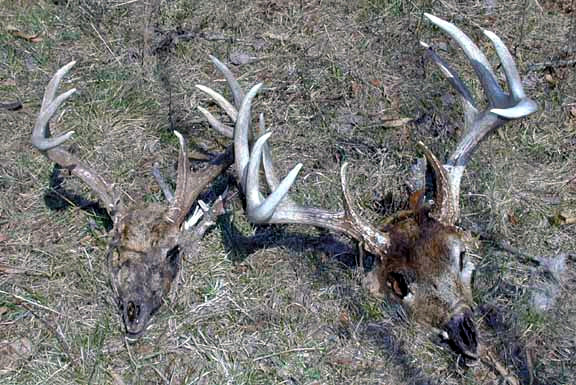 July, 2004. Mike Seeber found these two amazing winterkill bucks around the Duluth area last winter.
