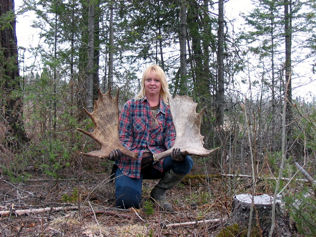 April, 2004. Here's another batch of great photographs from the Potters. This time it's moose antlers. Look at the size of that pan in the first one! An impressive Alaskan-style moose paddle.
