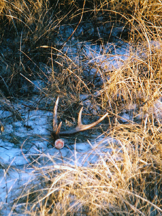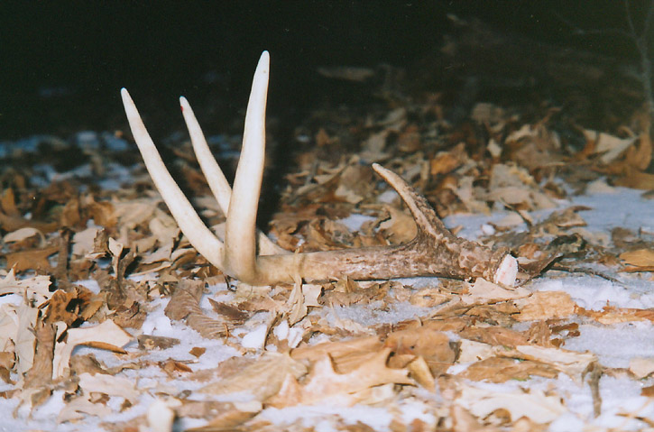 January, 2005. Here's a group of some of the first shed antlers of the year; basically a few small 3, 4 and 5 points. A shed is a shed; good to get that first one in the books. The one on the deck is from a friend up north. The two after that are of the same little 3pt. Good luck finding that one. Lots of owls out there, too.
