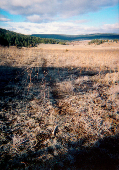 April, 2005. The Potter's sent in some really nice photographs from a recent shed hunting trip. Chris is holding up a tank. An older one, but still a beauty. As you can see, they traversed some fairly treacherous terrain to get to "the spot".
